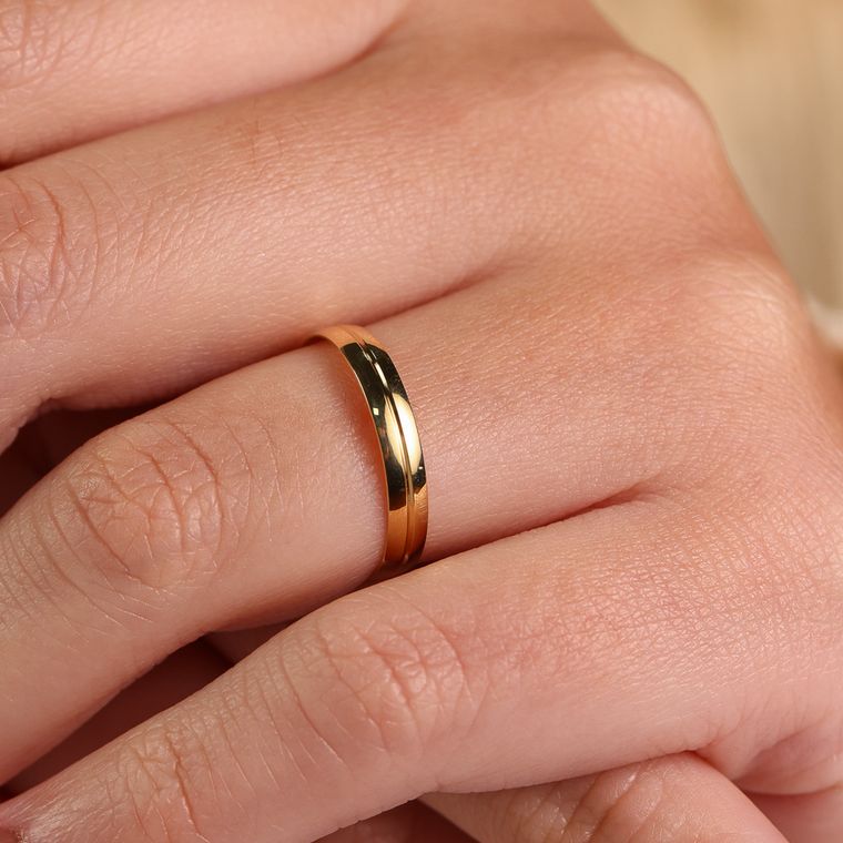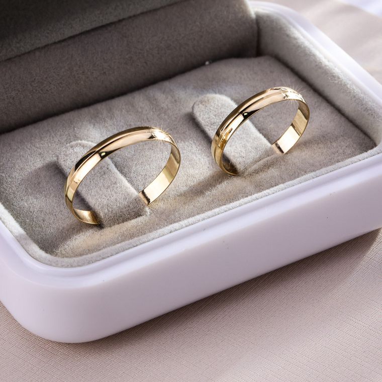 Confeccionadas em ouro 18K (750), estas alianças apresentam formato redondo, acabamento polido e um delicado canal no centro, unindo tradição e delicadeza em uma peça atemporal.