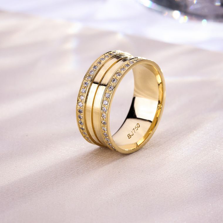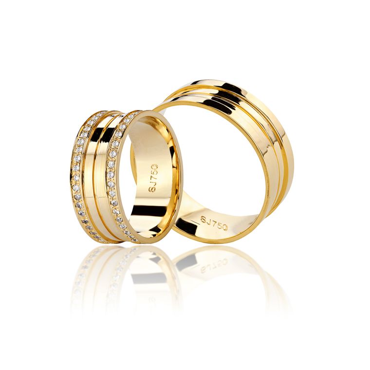 Alianças Capri em Ouro Maciço 18K – Design Imponente com Toque de Brilho