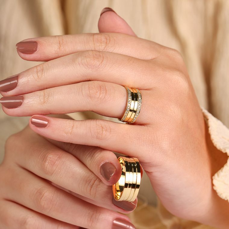 Confeccionadas em ouro maciço 18K (750), combinam design robusto com detalhes marcantes e elegantes.