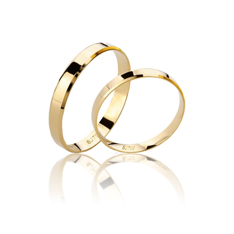 Alianças em Ouro 18K com Design Quadrado e Chanfrado Lateral – Sofisticação com Toque Moderno