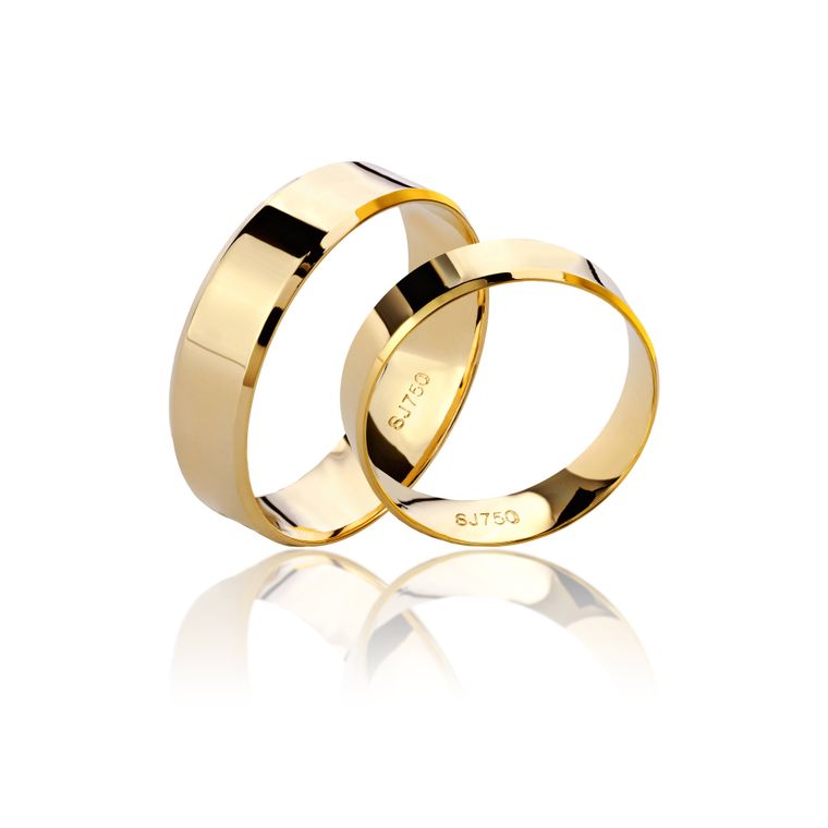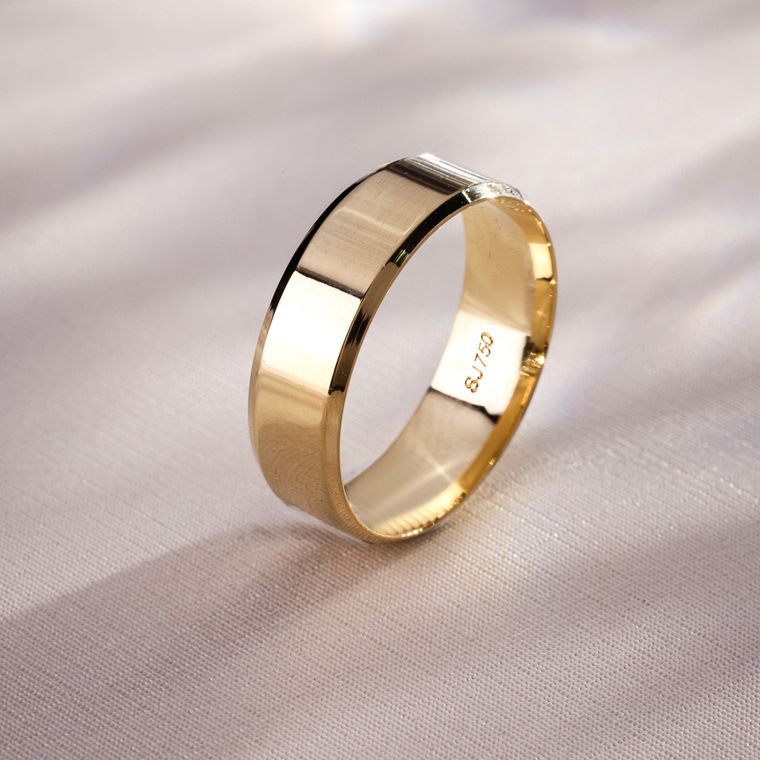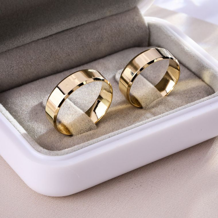 Alianças em Ouro 18K com Design Quadrado e Chanfrado Lateral – Sofisticação com Toque Moderno