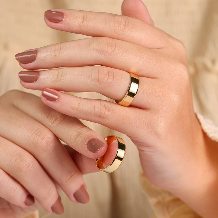 Confeccionadas em ouro 18K (750), essas alianças possuem formato quadrado com delicado chanfrado nas laterais, proporcionando um visual elegante e contemporâneo.