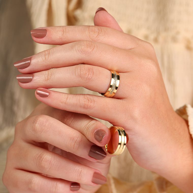 Confeccionadas em ouro maciço 18K (750), as alianças Florença trazem sofisticação em cada traço e são ideais para casais que valorizam um design clássico com personalidade.