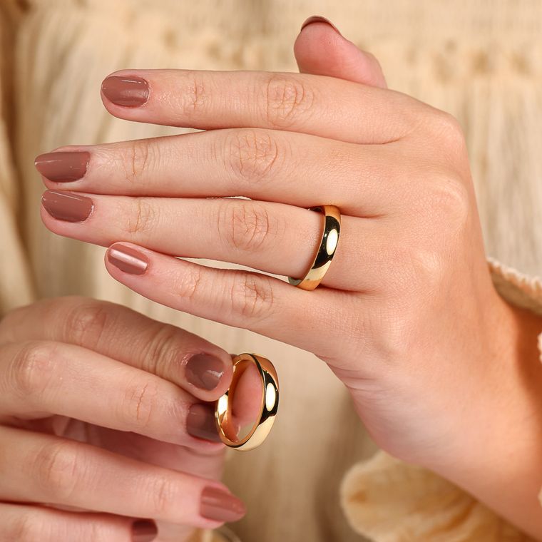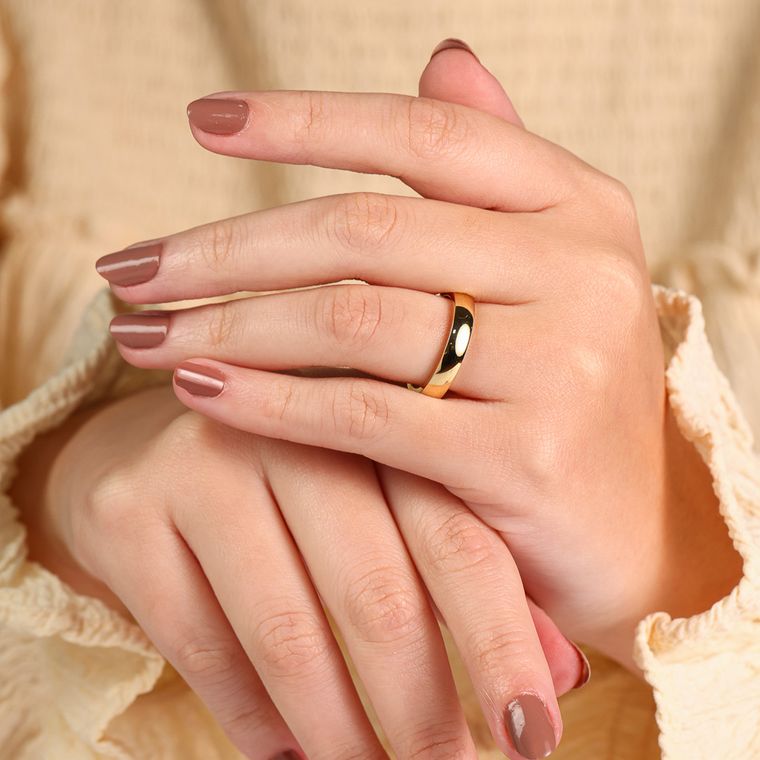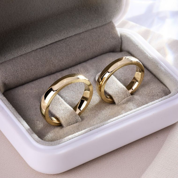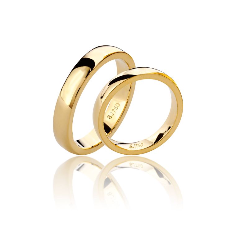 Alianças confeccionadas em ouro 18K (750), essas alianças trazem o design tradicional com perfil fechado e acabamento polido, ideal para casais que valorizam o estilo clássico com presença marcante.