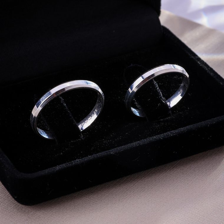 Alianças de Prata 950 Quadradas com Canto Chanfrado
