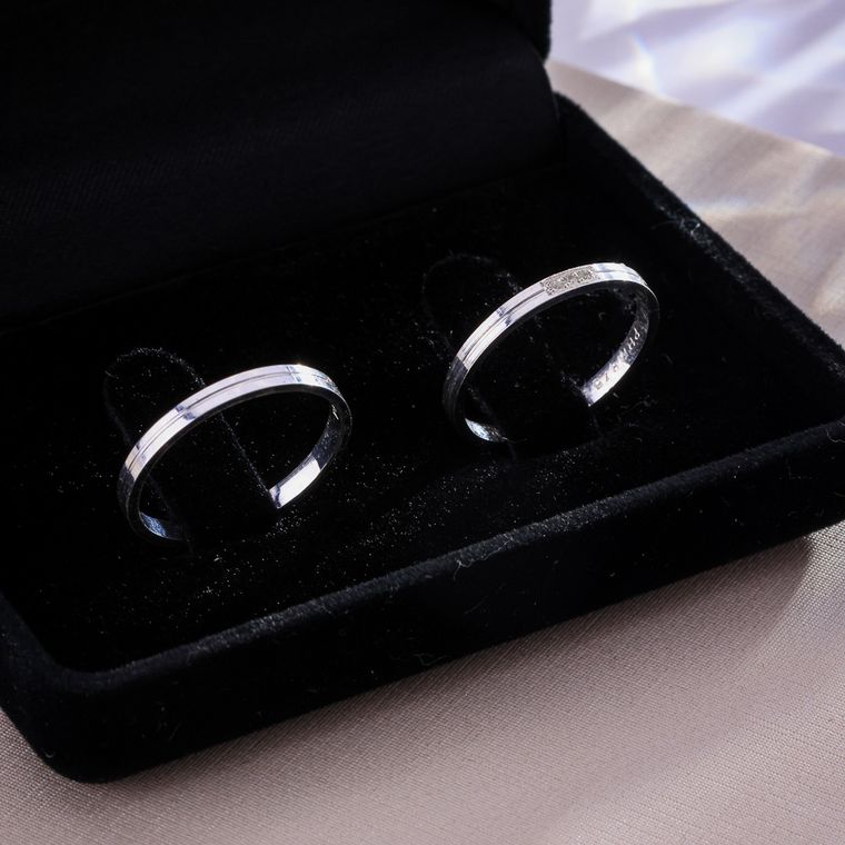 Ambas as peças possuem interior semi anatômico, garantindo conforto no uso diário. O acabamento liso realça o brilho natural da prata 950 maciça, reforçando a beleza das formas retas e do canal central.