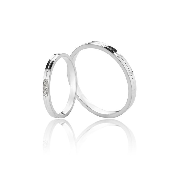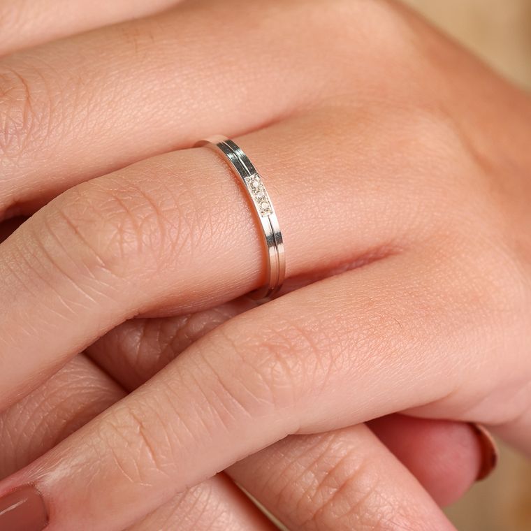 Pedras: 3 zircônias cravejadas na aliança feminina