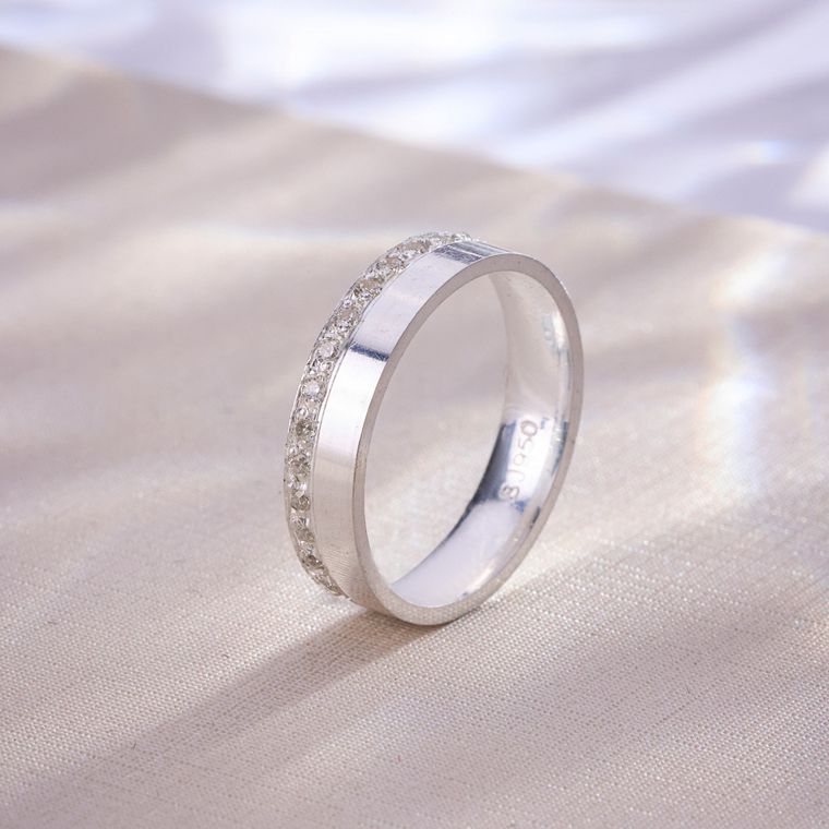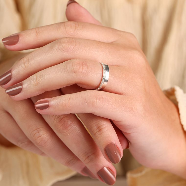Pedras: Meia volta de zircônias cravejadas na aliança feminina