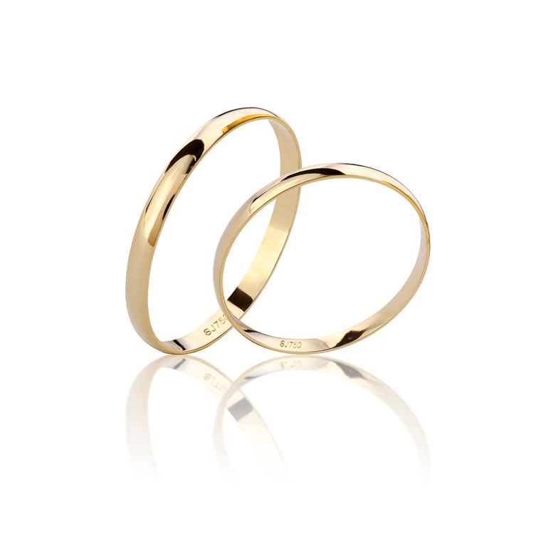 Confeccionadas em ouro 18K (750), essas alianças possuem design tradicional com modelo abaulado, representando a continuidade e os detalhes do amor.