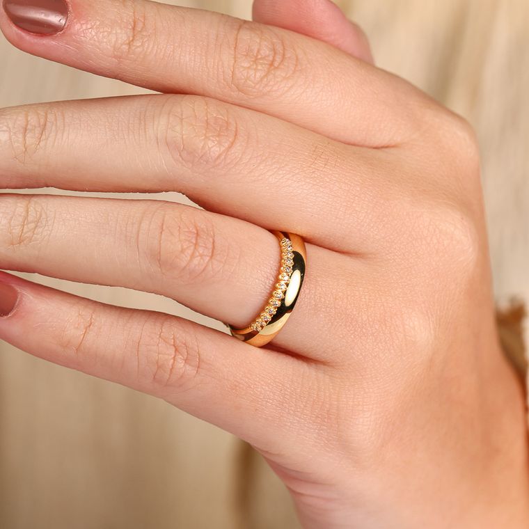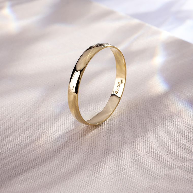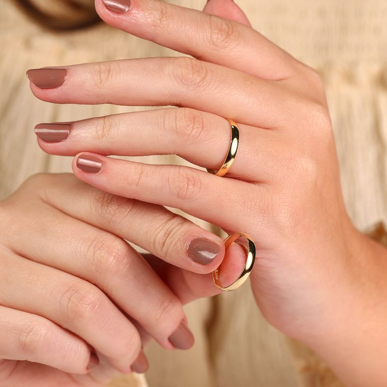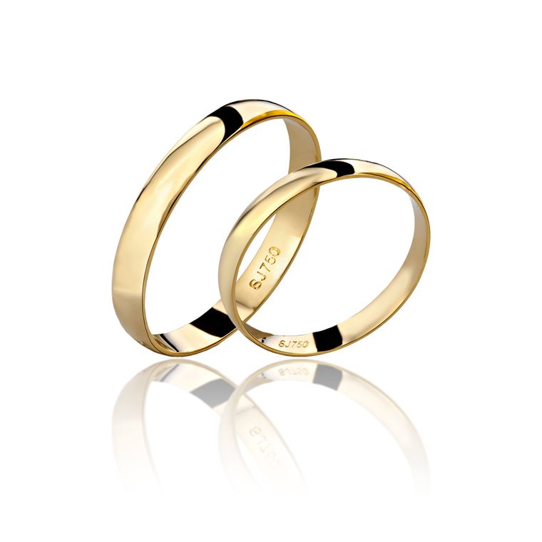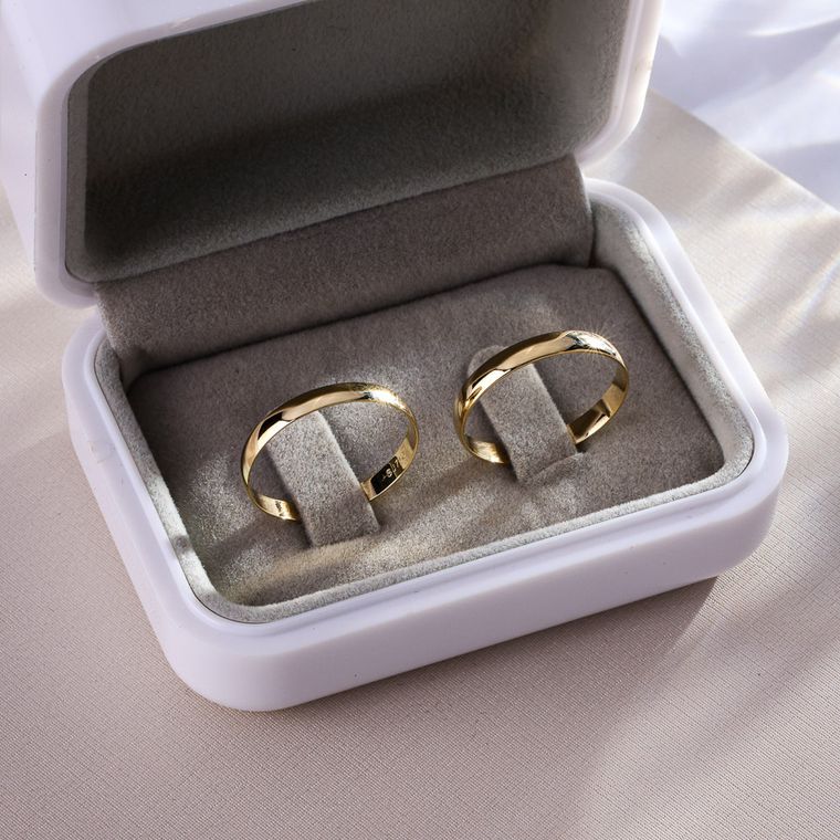 Alianças confeccionadas em ouro 18K (750), estas alianças possuem design tradicional com modelo abaulado, representando a elegância da simplicidade e a continuidade do amor.