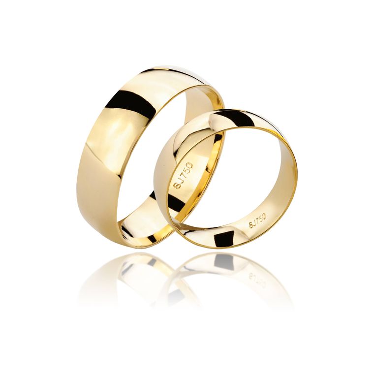 Confeccionadas em ouro 18K (750), estas alianças possuem formato redondo, acabamento polido e proporções mais robustas, ideais para casais que valorizam presença, tradição e elegância.