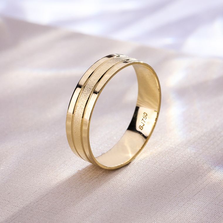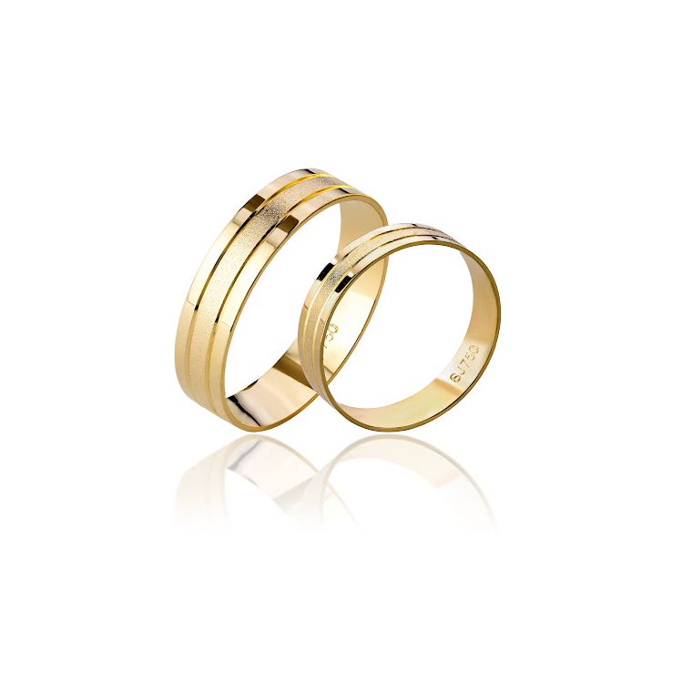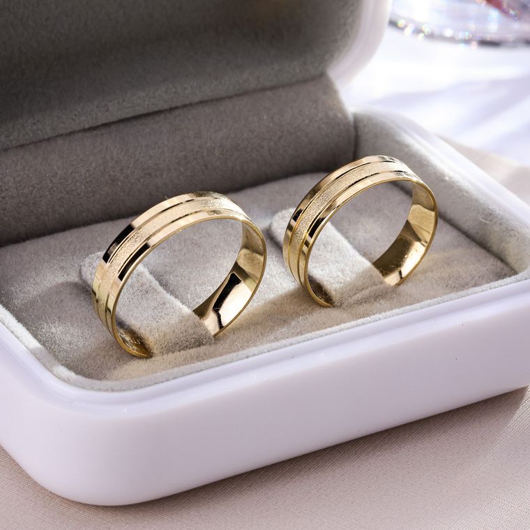 Alianças confeccionadas em ouro 18K (750), estas alianças possuem formato quadrado e são valorizadas por um friso diamantado central, que adiciona um toque de brilho e sofisticação ao design.