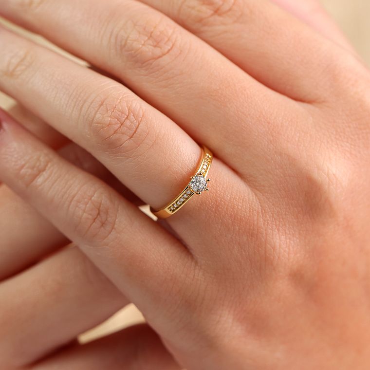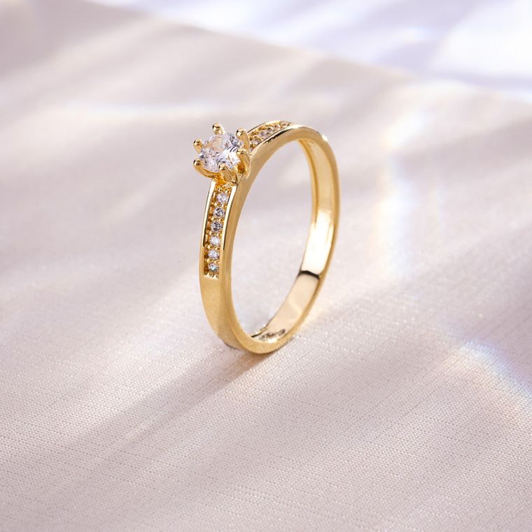 • Detalhes laterais: 12 pedras de zircônia, sendo 6 cravejadas de cada lado do aro, adicionando ainda mais brilho e delicadeza à peça