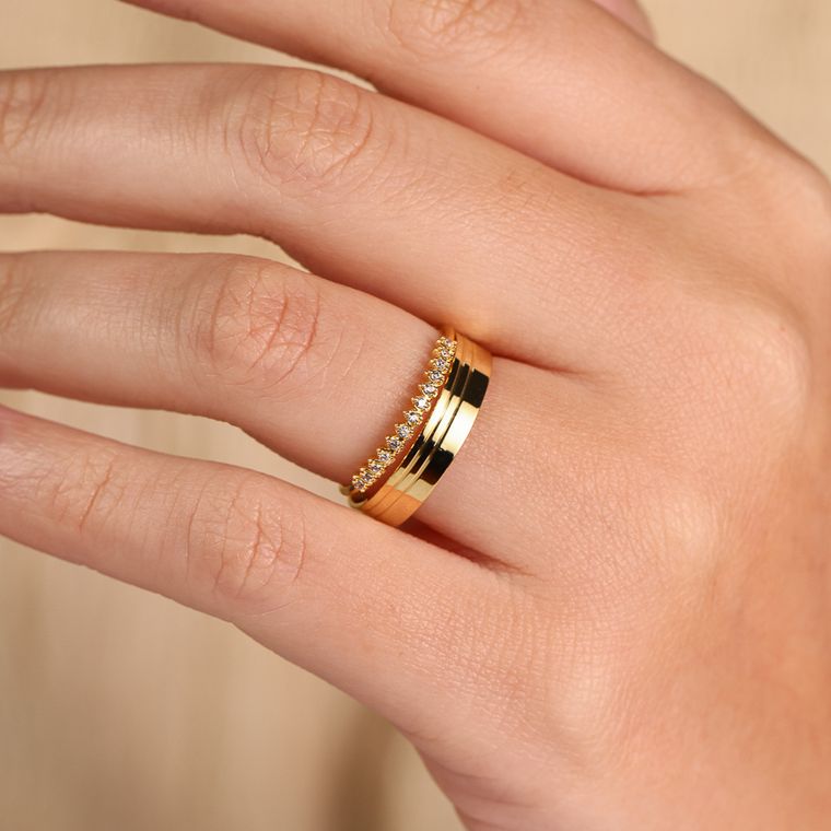 Pedras: 13 zircônias de 1 mm cravejadas na parte superior